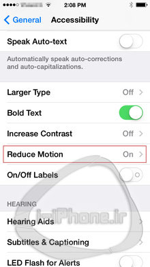 و در نهايت Reduce Motion به حال Off قرار دهيد.
